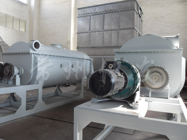 槳葉式干燥器分為熱風式和傳熱式。熱風式即通過熱載體(如熱空氣)與被干燥有物料相互接觸并進行干燥,在傳導式中熱載體并不與被干燥的物料直接接觸,而是熱表面與物料相互接觸。傳導式的優(yōu)點是物料不易被污染,排氣量小,熱效率高,體積相對小,有利于節(jié)約能源及防止空氣污染。